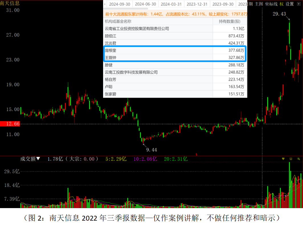上一篇内参分享牛散—庞根奎的战绩之后,很多用户朋友非常感兴趣,开始深入研究牛散动向。有的用户在研究庞根奎的动向中,发现了一些“共同投资人”的线索。请看图1、图2:
